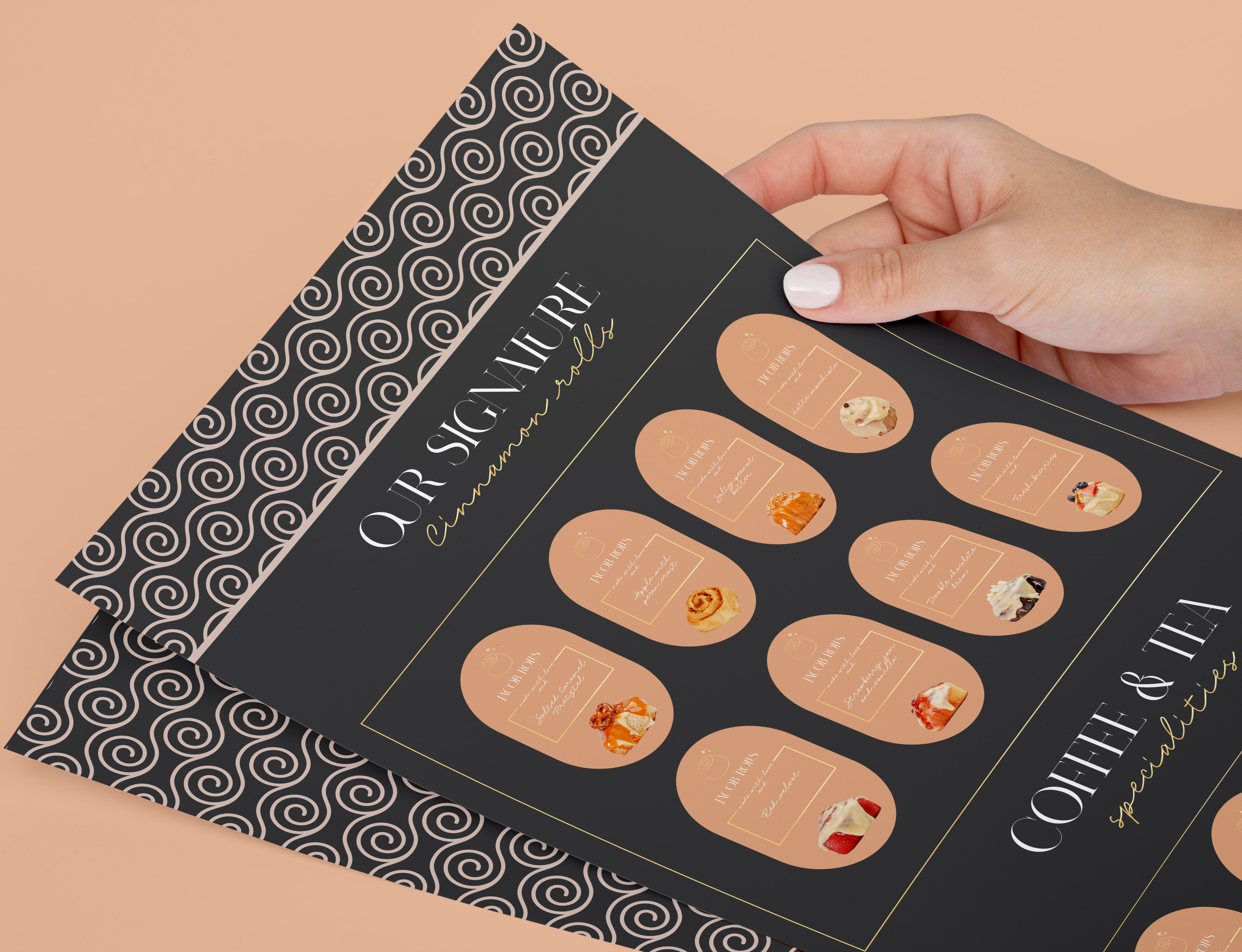 Das Logo, die Menügestaltung und die Verpackung vereinen warme Zimt-Töne, verspielte Muster und moderne Typografie. So wird die handwerkliche Qualität und der unverwechselbare Genuss der Marke visuell erlebbar gemacht – vom Coffee-to-go-Becher bis zur Einkaufstasche.