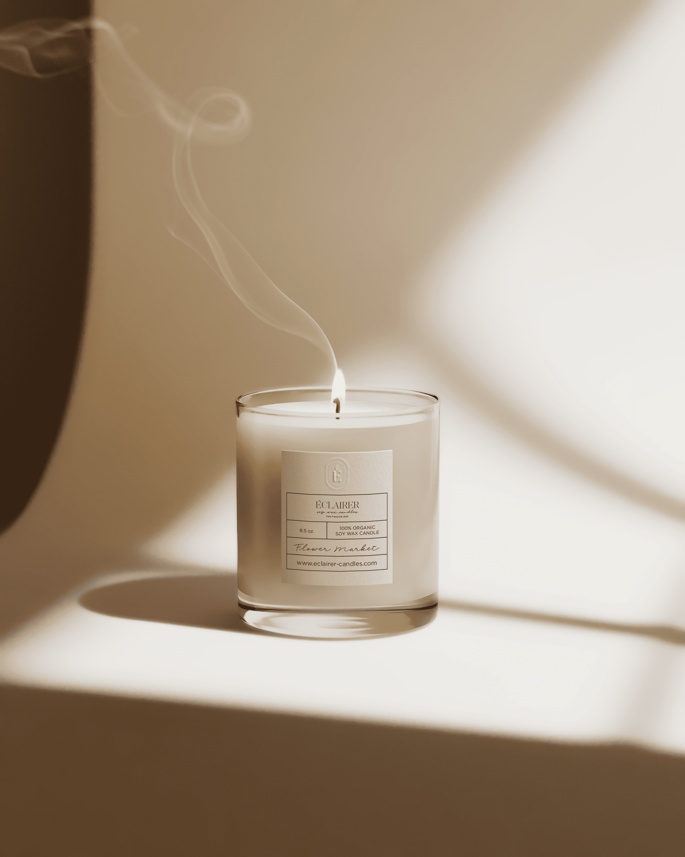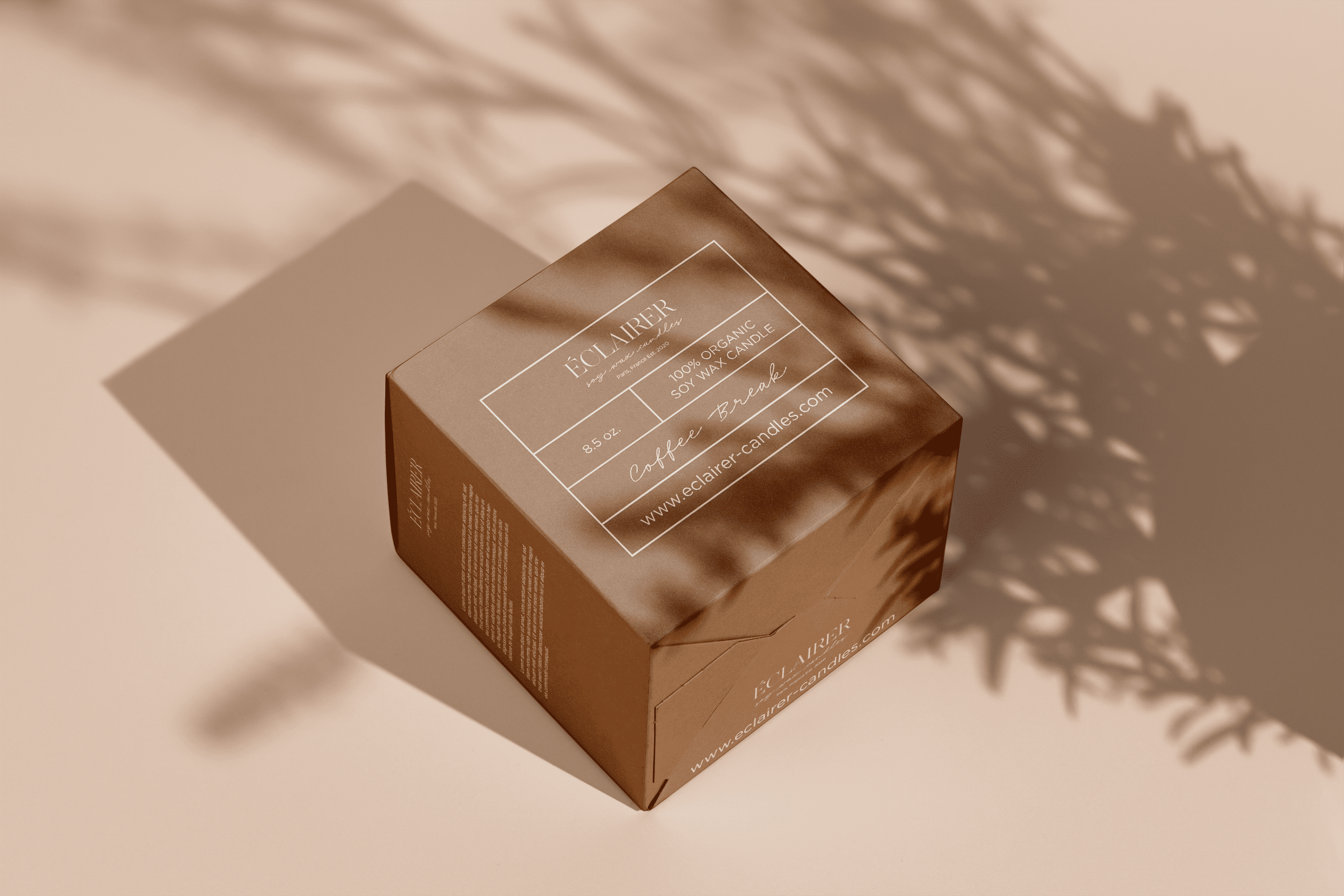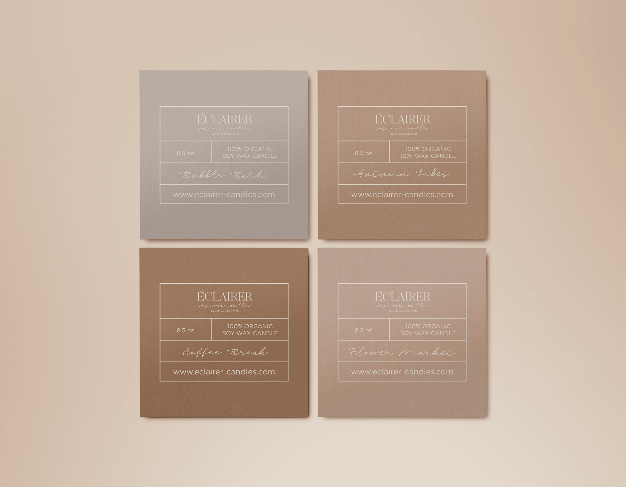 Für die Marke Éclair entwickelten wir ein ganzheitliches Branding, das die Eleganz und Reinheit der Sojawachs-Kerzen widerspiegelt.